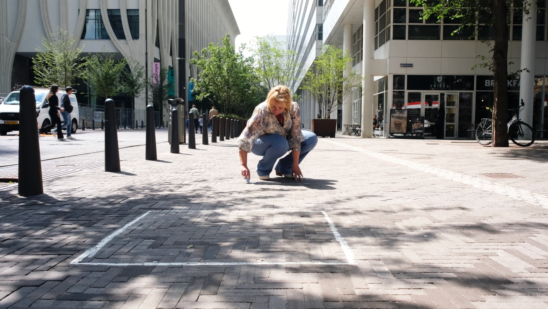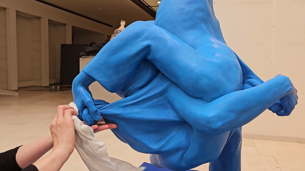 Paula, een levende standbeeldartieste, zoekt naar haar geliefde stenen sculptuur, wat een symbolische zoektocht naar verloren liefde belicht.
